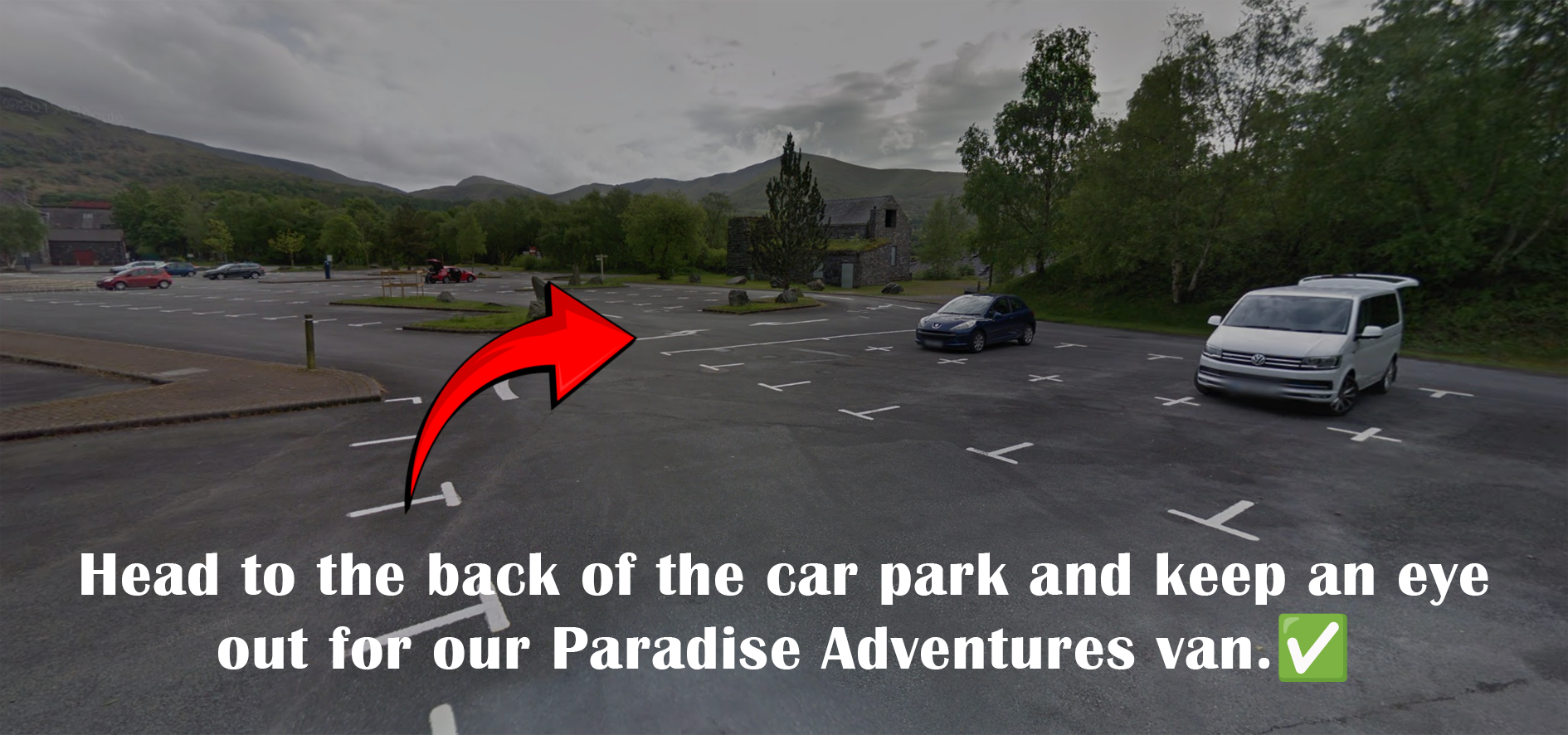 Follow the train tracks down to the car park